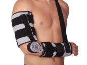 Soporte con rango de movimiento cada 10°. Permite la inmovilización del codo con control de movimiento en flexo-extensión. Indicada en tratamientos de luxaciones y dislocaciones de codo. Adecuada para procesos post-quirúrgicos seguidos a la implantación de prótesis, cuidados funcionales, fracturas del húmero distal e inmovilización temporal.